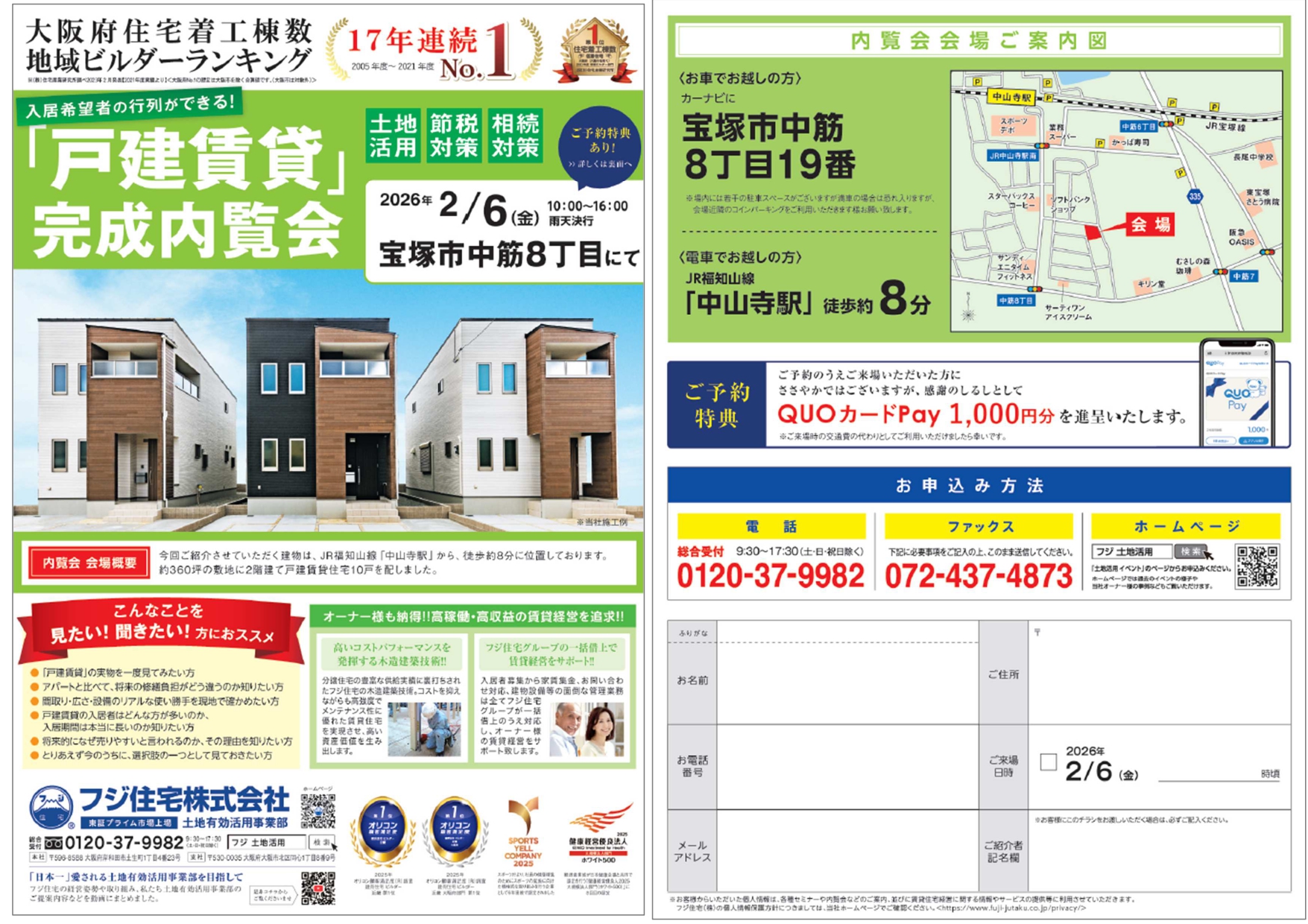 宝塚市中筋8丁目にて「戸建賃貸」完成内覧会を開催いたします!